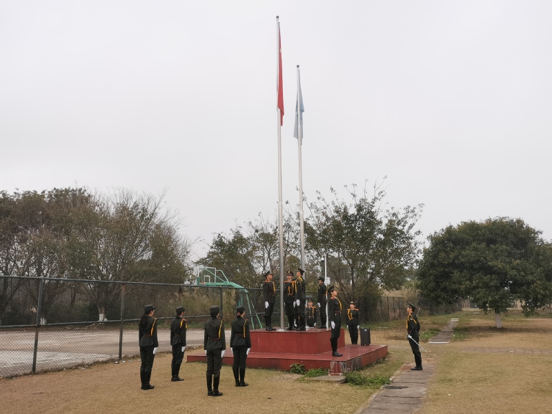 朝阳下,晨风中,伴随着国歌激昂的旋律,鲜艳的五星红旗缓缓升起,在场师生面向国旗肃然而立、行注目礼,心中为伟大祖国送上最美好的祝愿。