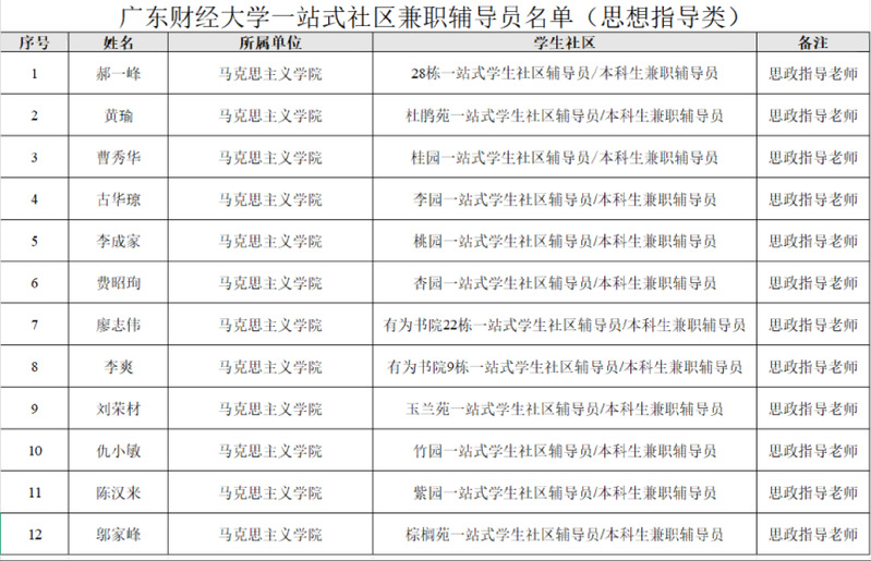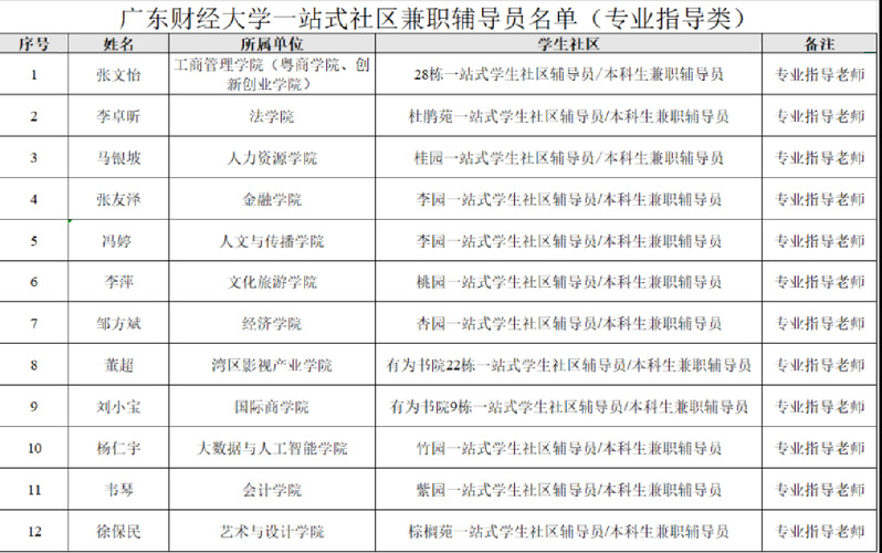 为深入贯彻落实教育部《高校“一站式”学生社区综合管理模式建设提质增效指南(2025年修订版)》精神,进一步推动我校“三全育人”综合改革走深走实,强化学生社区思政教育、学业指导、文化建设等功能,经学生工作部研究决定,在全校范围内选聘一批政治素质高、业务能力强的教师担任“一站式”学生社区兼职辅导员。经个人申请、学院推荐、学生工作部审核研究,现决定选聘张文怡等24名教师为我校“一站式”学生社区兼职辅导员。具体事项如下: