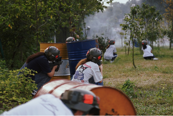 最后,同学们以真人cs的形式开展红蓝阵营对决。草丛潜伏、战术转移、默契配合,模拟枪声中尽显协同作战能力,在实战场景中锤炼顽强意志。真人 CS 战场已经 “硝烟弥漫”,身边的战友是彼此最默契的搭档。