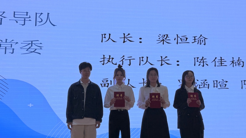 会上,督导队全体成员奏唱国歌并进行宣誓,队长梁恒瑜、执行队长陈佳楠、新生代表田志慧同学分别上台发言,现场还进行了节目表演。