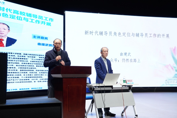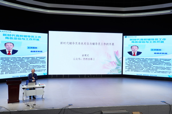 曲建武教授以四十余载深耕思政一线的丰富经历,从“为什么做辅导员”切入,叩问每一位学生工作者的教育初心。他强调,辅导员工作是一项“用生命影响生命、用灵魂唤醒灵魂”的崇高事业,教育的本质是“心与心的碰撞”,唯有以人格魅力感染学生,用真情温暖学生,才能让思政工作直抵心灵。他从大学文化、人民满意和学生成长等方面系统阐释了新时代辅导员的角色定位,并强调了为党育人、为国育才的初心使命,提出了“加强理论学习、自己教育自己、共筑理想信念、工作脚踏实地”等工作方法。