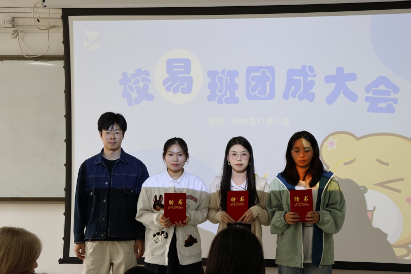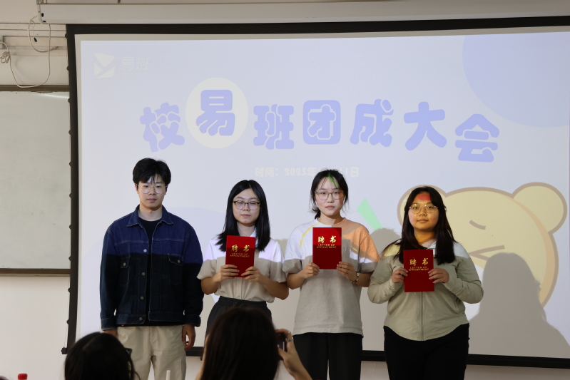 易班学生工作站站长、副站长、各部门负责人、干事代表分别进行发言,邵奕翔为全体学生干部颁发聘书,活动中还进行了节目表演及素质能力拓展培训。