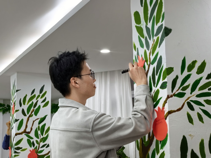 最后,中心成员围绕“声声不息”榴“员”好声音和“围炉话心”榴“员”话心语进行团建交流。大家在布置温馨的茶席旁品茶点、聊心得,用歌声传递心语、凝聚力量。现场气氛融洽,笑语不断,进一步增强了团队的归属感与合作意识。