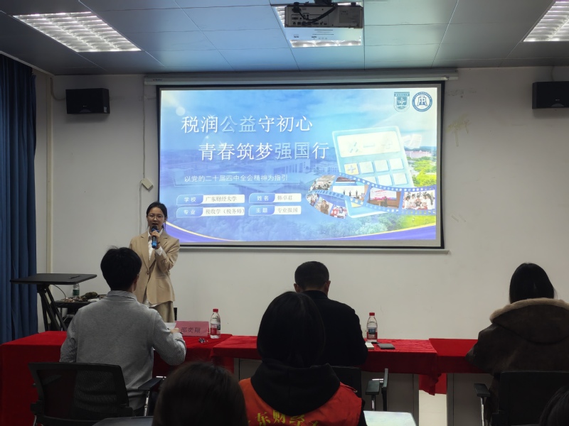 决赛现场,7位同学依次上台围绕党的二十届四中全会精神进行理论宣讲。比赛决出一等奖1名、二等奖2名、三等奖4名。张自广依次对7位选手进行点评。