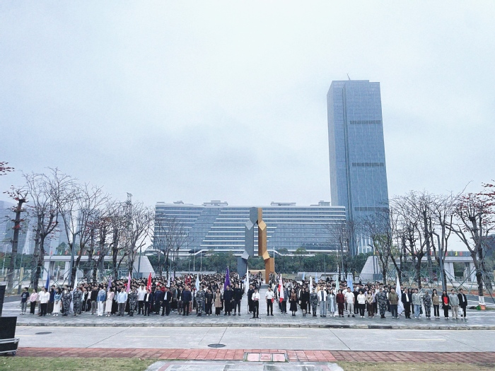 3月2日早上,我校在两校区举行春季学期第一次升旗仪式。学工部部长钟智,学工部全体成员,各学院党委副书记、辅导员和3000多名学生代表参加升旗仪式。广州校区升旗仪式由学工部副部长吴宏豪主持。